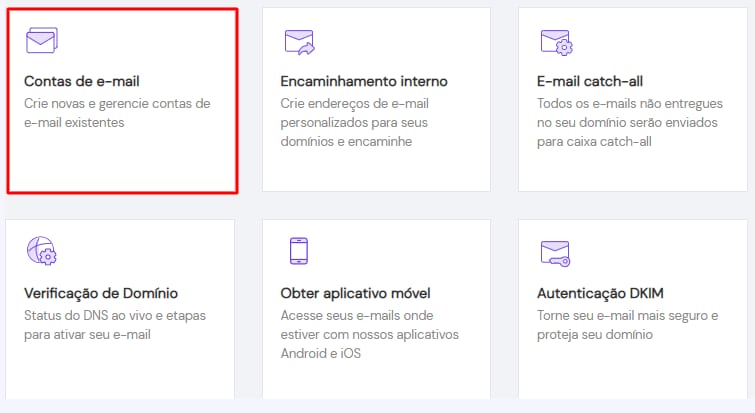 Abra E-mails → nome de domínio → Contas de E-mail: