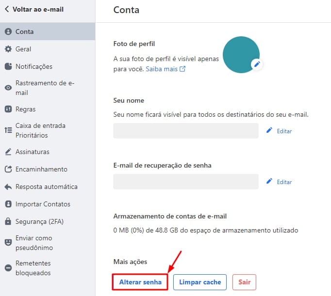 Opção 2 – Altere a senha da conta de e-mail do Webmail