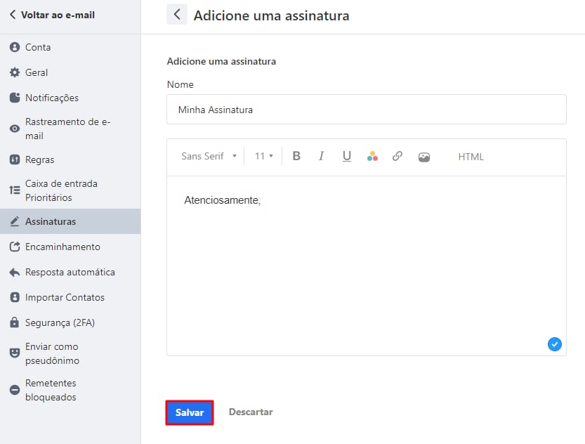 Pronto! A partir de agora, sua nova assinatura será adicionada automaticamente a todas as suas mensagens.