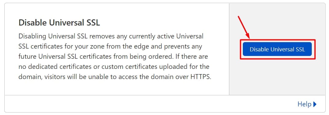 Role para baixo até a seção Disable Universal SSL e clique em Disable Universal SSL :