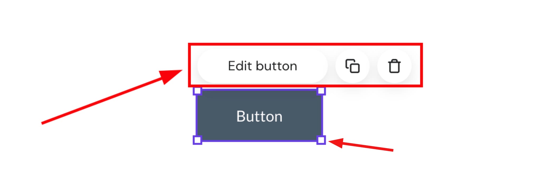 Clique em um botão para ver mais opções (editar, duplicar, excluir, redimensionar):