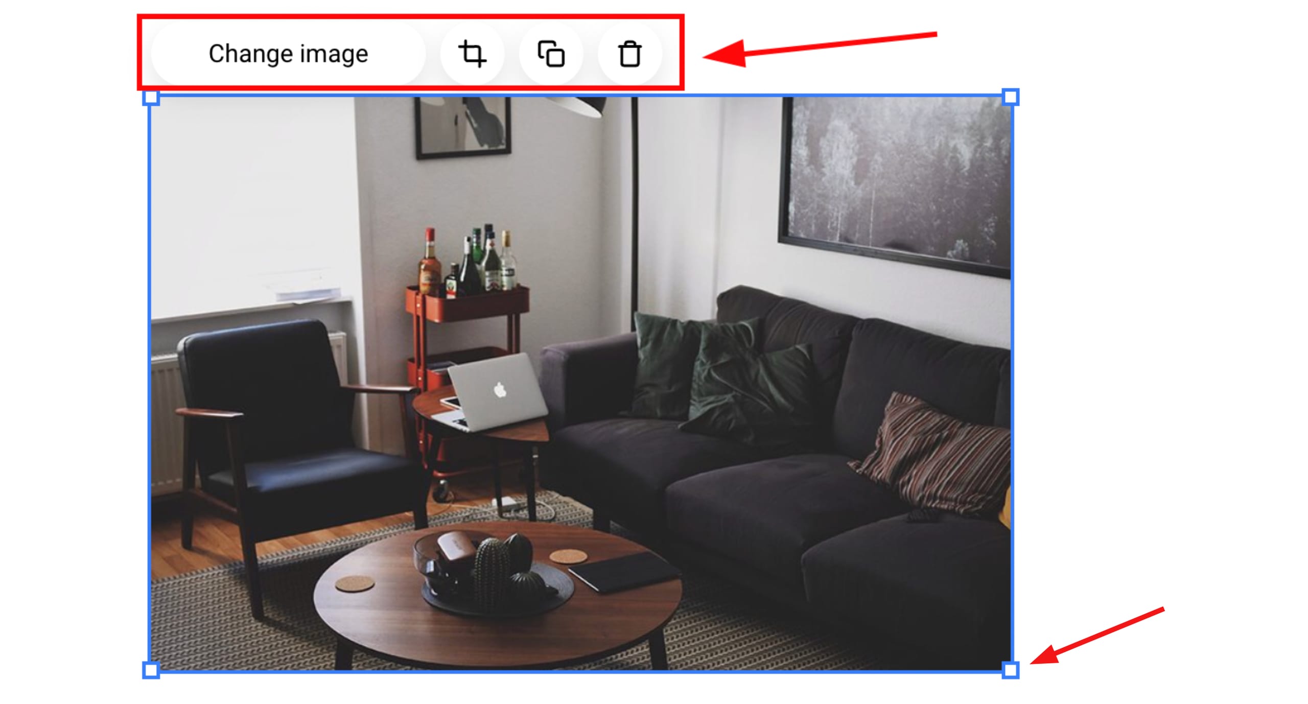 O botão Alterar imagem também abre as configurações do elemento de imagem: