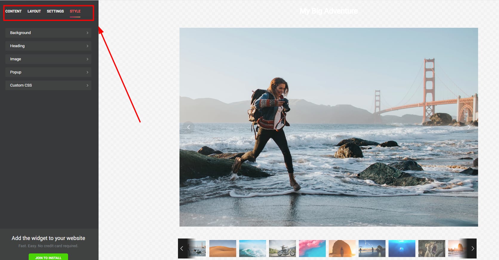 Se você quiser algo mais personalizado, fique à vontade para usar ferramentas de terceiros. O Elfsight é uma das muitas plataformas que oferecem vários widgets incorporáveis, incluindo o widget de Galeria de Fotos.