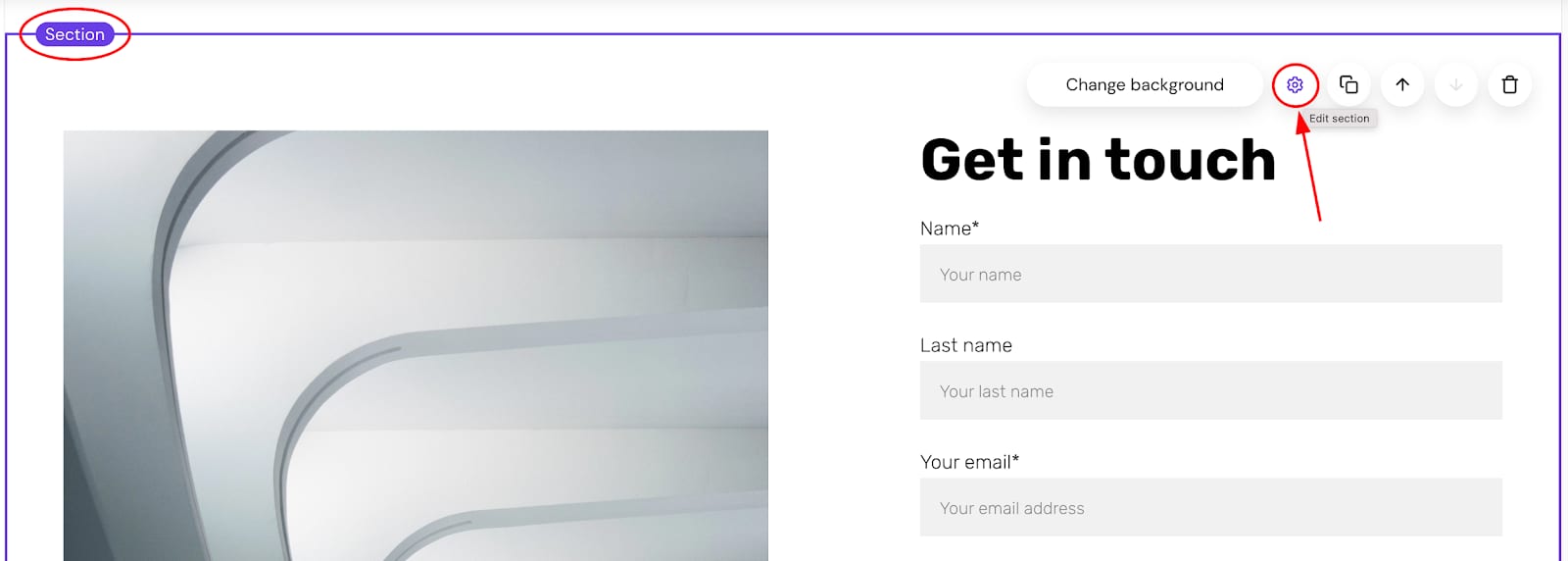 2. Clique em qualquer lugar nessa seção e abra as configurações da seção;