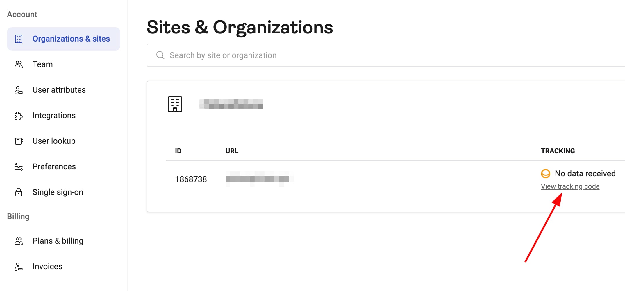 Faça login na sua conta do Hotjar, vá para a seção Sites & Organizations [Sites e Organizações] e clique em View tracking code [Ver código de rastreamento]: