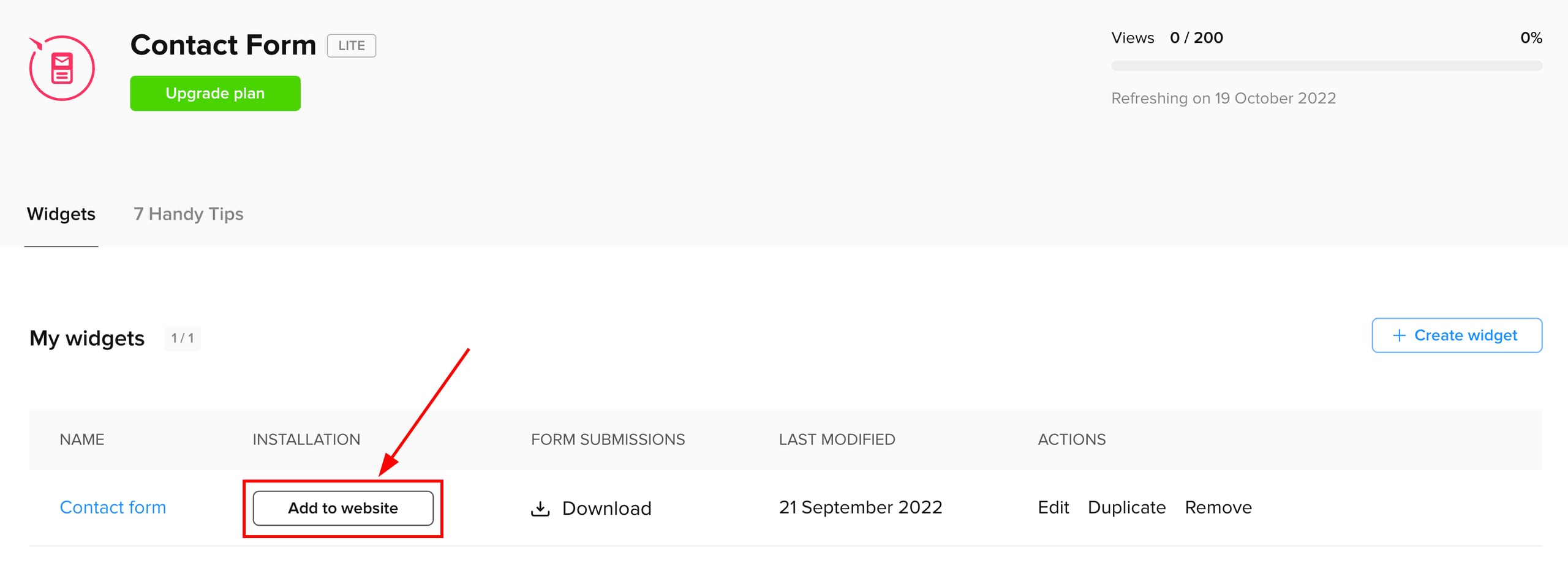 Incorpore o código em seu site usando o elemento de código incorporado e o formulário de contato será adicionado à sua página.