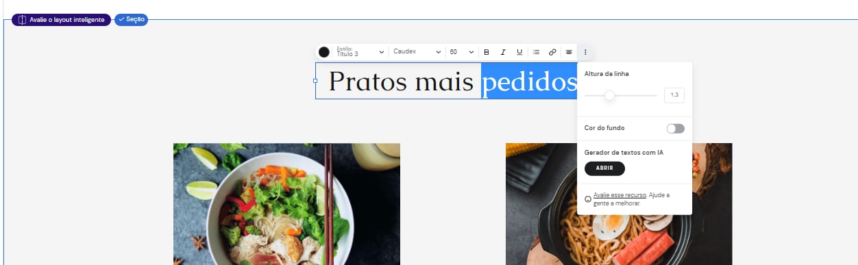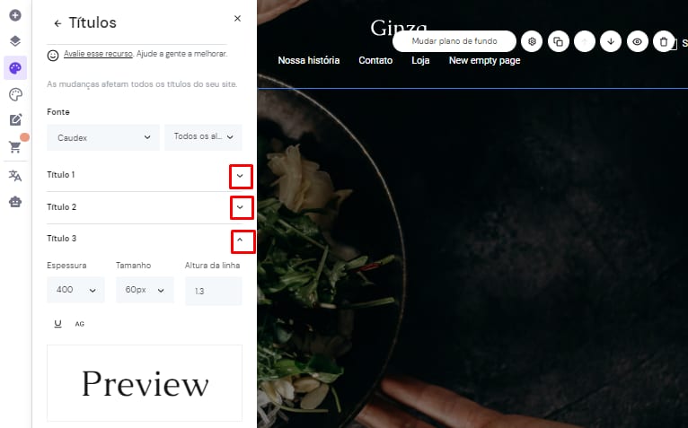As mudanças que você fizer serão aplicadas a todos os textos do seu site que pertencem à categoria em questão (por exemplo, Título 1 ou Parágrafo).