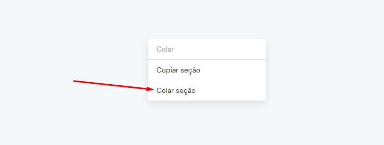 Para colar uma seção, clique com o botão direito do mouse em uma parte em branco do site, e selecione Colar seção: