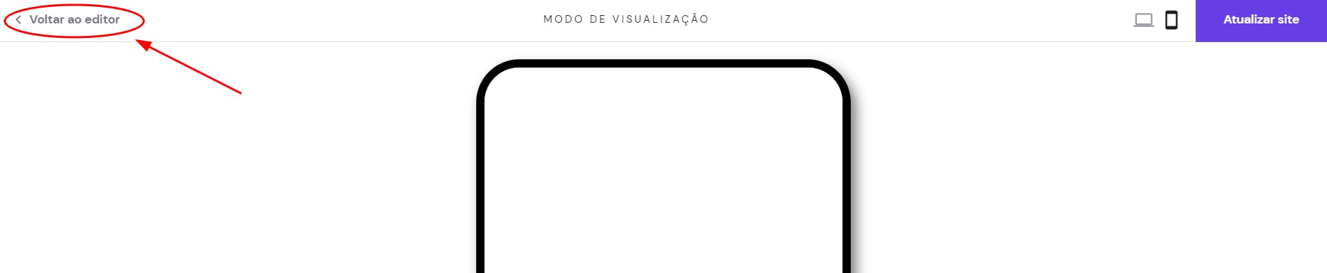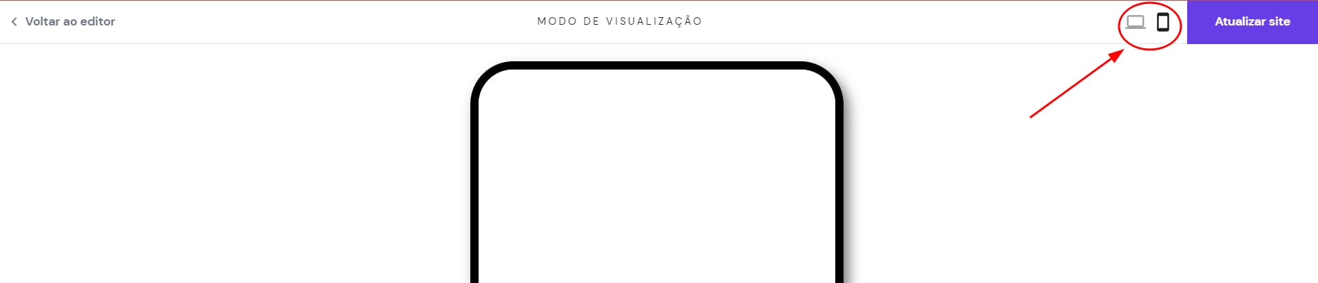 Para então prever a versão móvel do seu site, clique no ícone de celular dentro do modo de visualização, no canto superior direito: