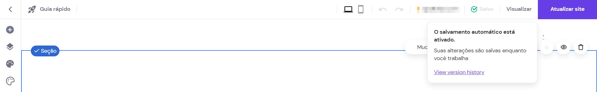 Quando você está editando seu site através do criador de sites da Hostinger, o editor salva automaticamente suas alterações enquanto você trabalha em seu site.