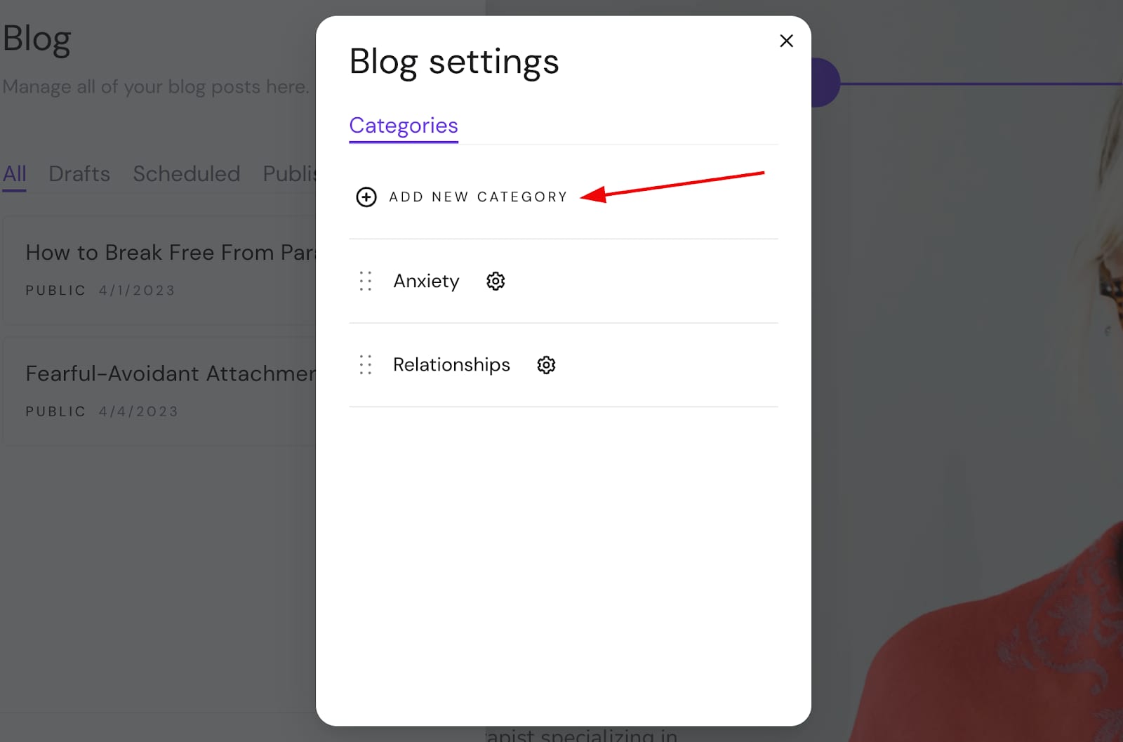Após categorizar as postagens do seu blog, você pode exibi-las por categoria usando as seções do blog em seu site.