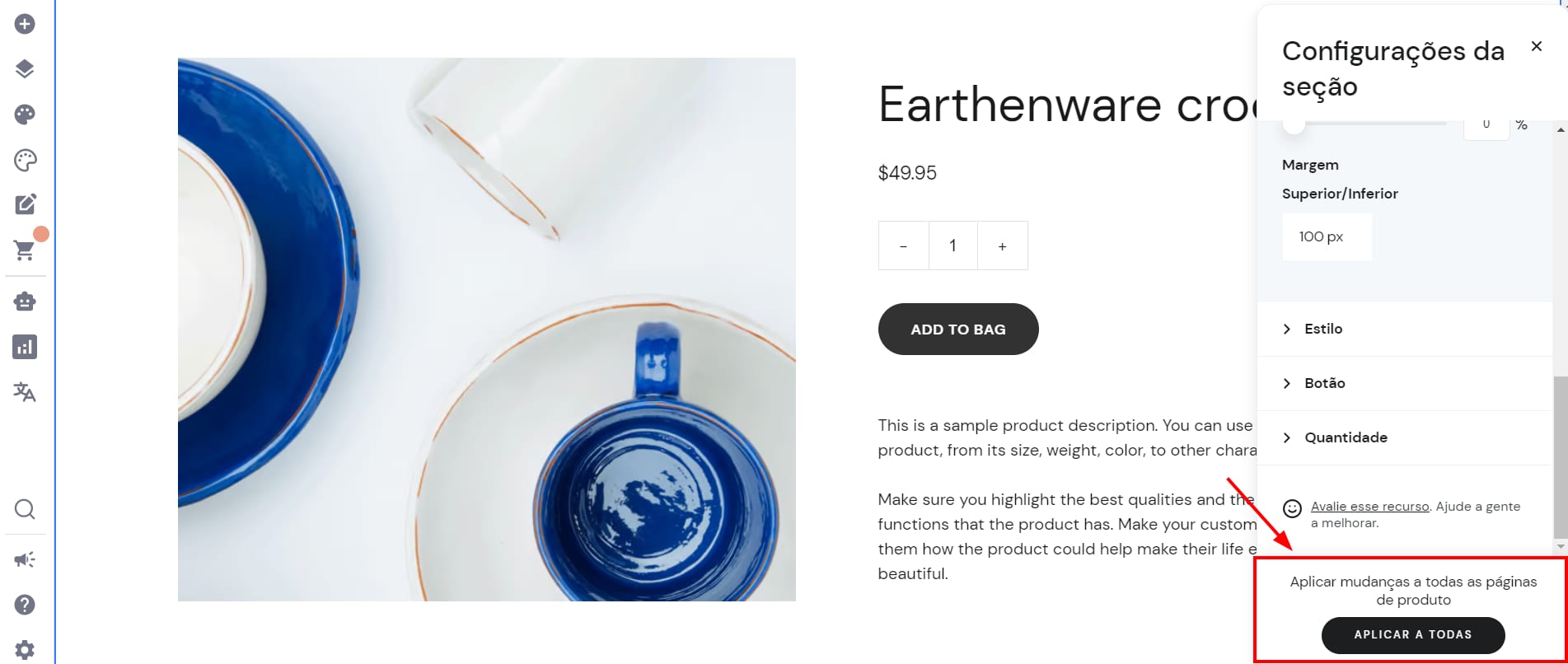 Assim que você fizer todas as alterações que deseja, é preciso aplicá-las às páginas clicando em Aplicar a todas: