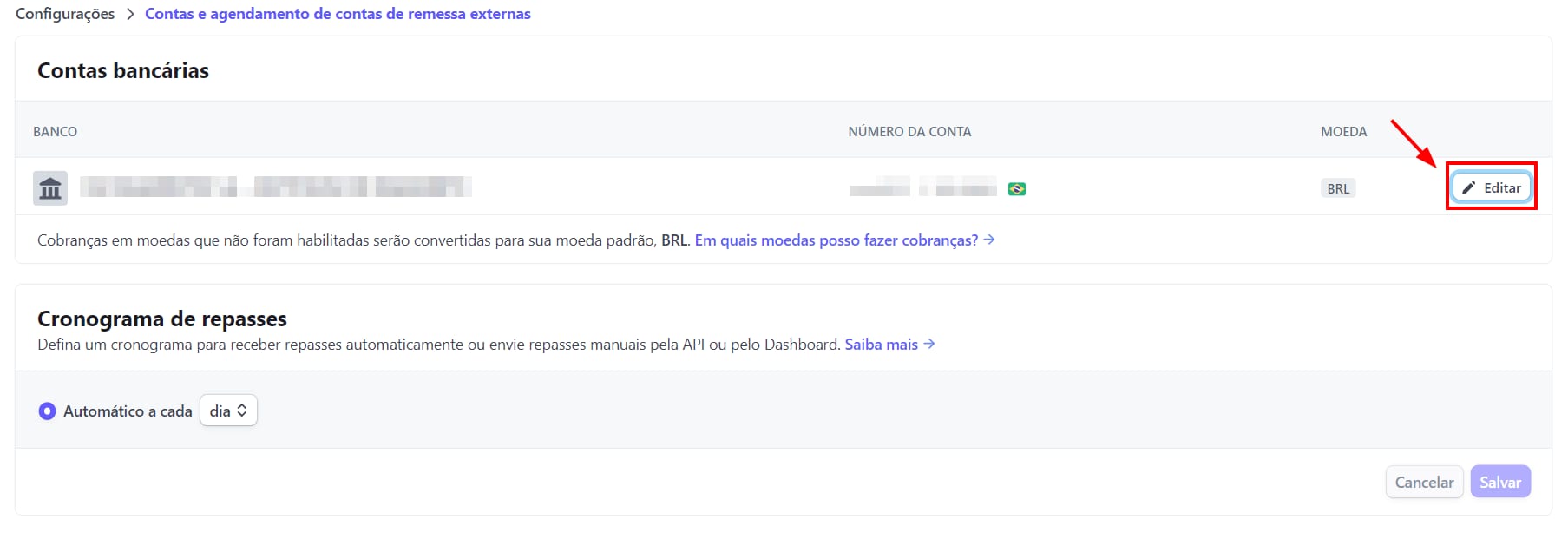 Você pode ajustar com que frequência deseja que seus pagamentos sejam transferidos para a sua conta bancária na sua seção de Configurações de pagamentos.