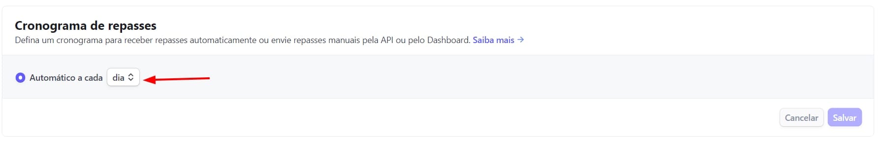Você poderá escolher entre pagamentos automáticos diários, semanais ou mensais. Caso escolha receber os pagamentos semanalmente/mensalmente, você também pode especificar o dia da semana/do mês que preferir.