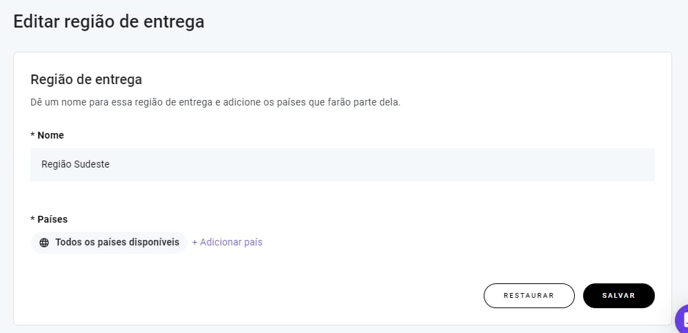 OBSERVAÇÕES: um país pode ser adicionado a uma zona de envio