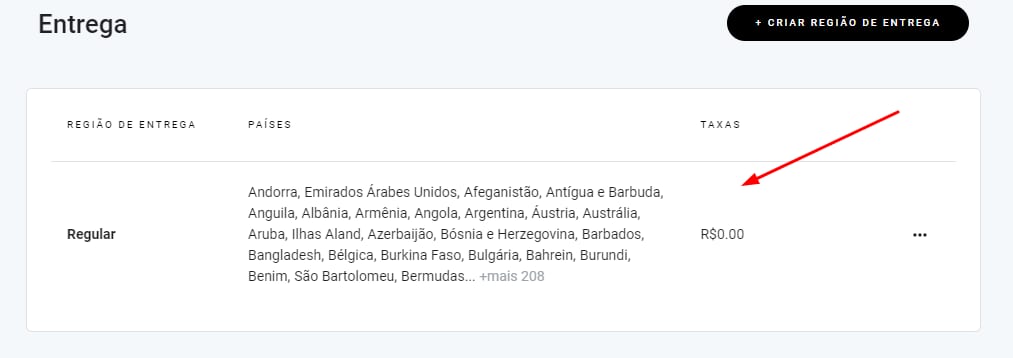 Para alterá-lo, acesse a área de gerenciamento da sua loja, vá em Configurações da loja → Frete e clique na zona de frete para abrir suas configurações: