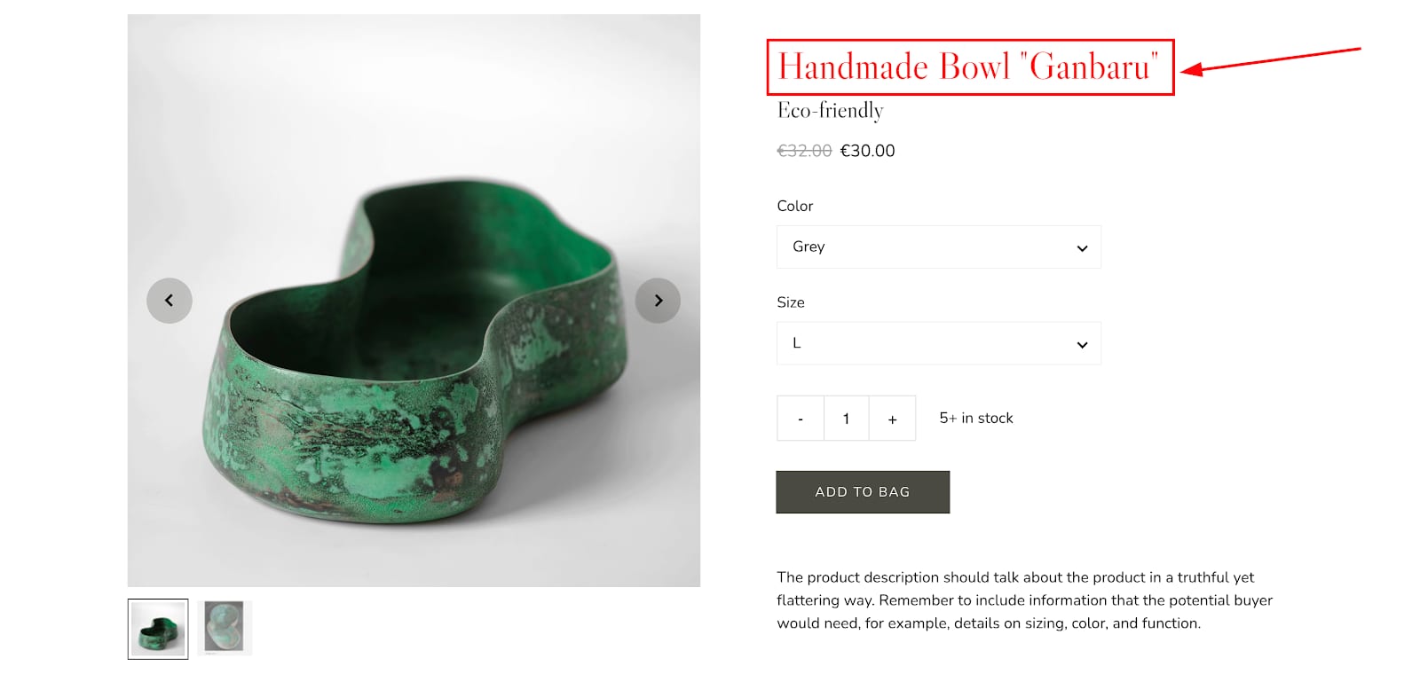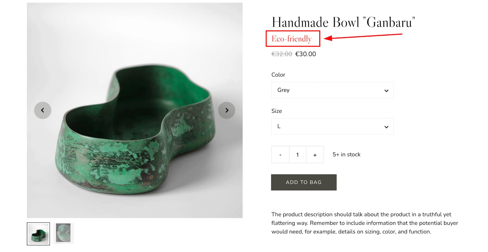 Alterar a cor do texto nas configurações de estilo afetará o título, subtítulo, preço, opções do produto e descrição do produto. Se houver um preço de venda, o preço original será sempre um tom mais claro.