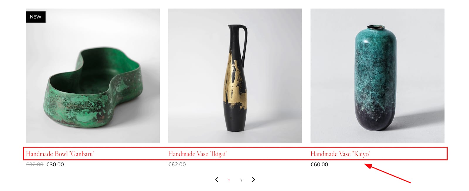 Alterar a cor do texto nas configurações de estilo afetará o título do produto, preço e botões de paginação. Se houver um preço de venda, o preço original será sempre um tom mais claro.
