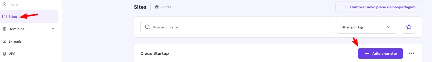 1. No hPanel, vá para Sites e clique em Adicionar site:
