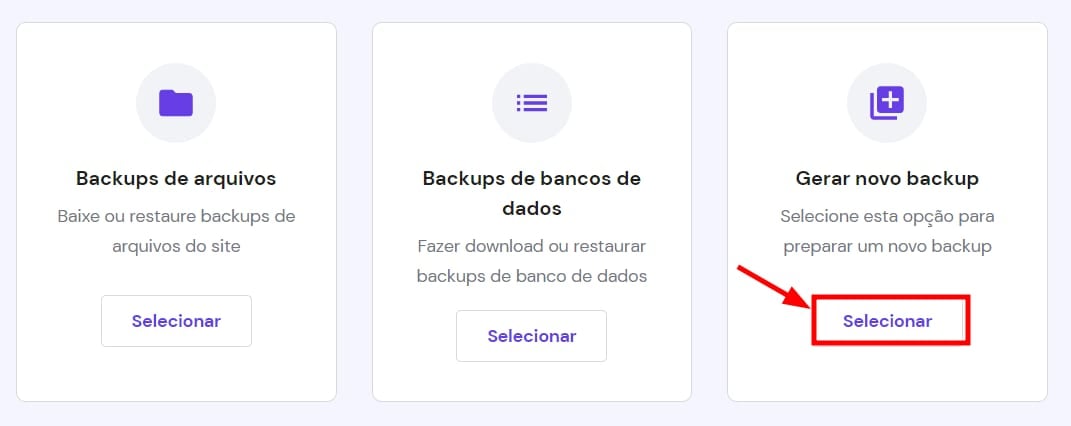 Localize a opção Gerar novo backup e clique em Selecionar: