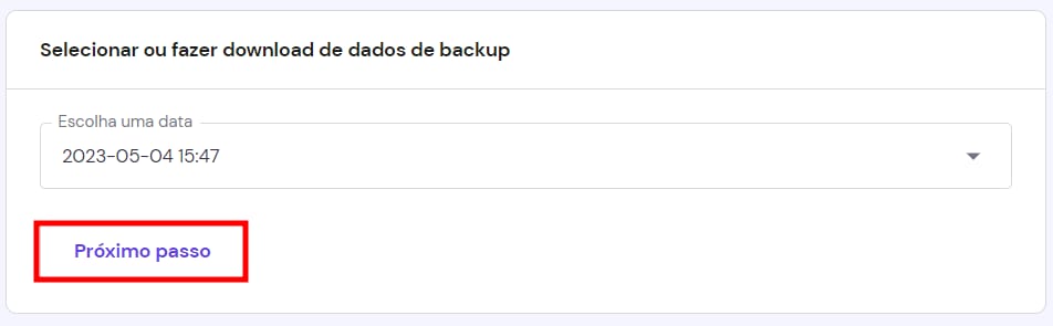 Selecione o backup do banco de dados que você baixou anteriormente (.sql.gz):