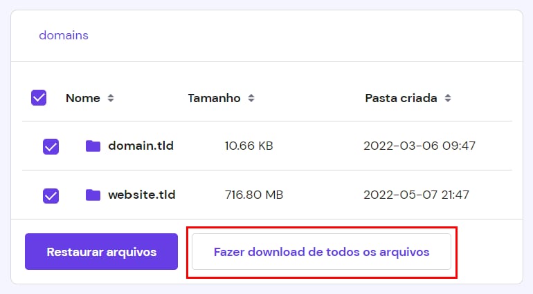 Feito! O arquivo baixado terá todos os arquivos do seu site 😊
