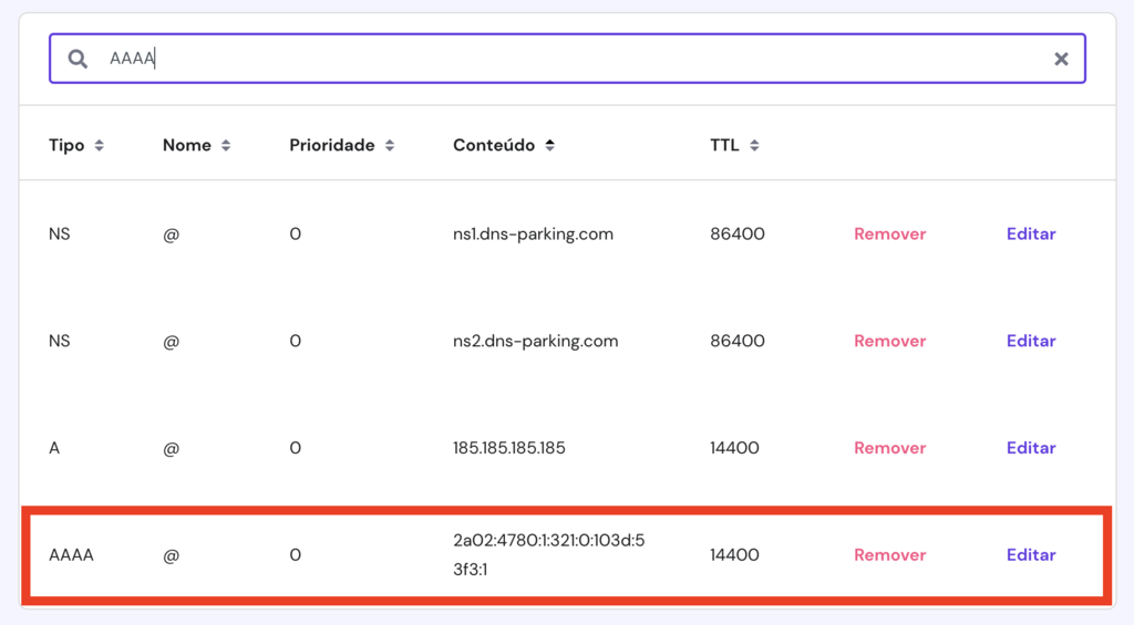 Ao contrário de um registro A, que mapeia o IPv4 do seu servidor de hospedagem para um domínio, um registro AAAA mapeia o endereço IPv6.