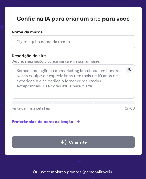 Quanto mais detalhes você fornecer, melhores serão os resultados. Por exemplo, aqui está o prompt que eu usei para criar um blog de culinária: