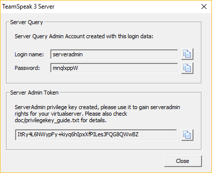Agora, abra os arquivos do servidor TS3 extraídos e execute o instalador ts3server.exe. Você será solicitado a aceitar o contrato de licença e o se o seu firewall deve permitir que esse software funcione. Quando você confirmar tudo, receberá a chave privilegiada e outras informações úteis.
