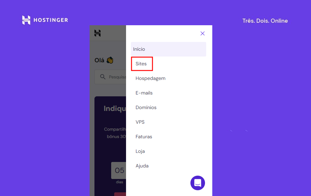 4. Siga as etapas exibidas e selecione Criador de Sites da Hostinger com IA.