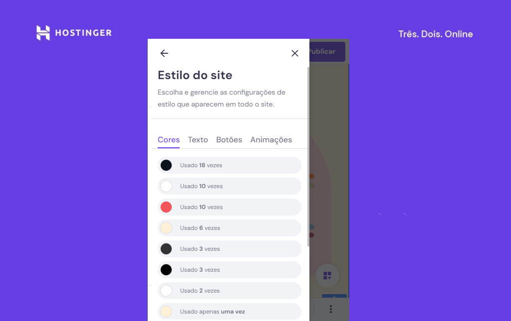 • Altere o Estilo do site adicionando novas cores, fontes, botões e animações.
