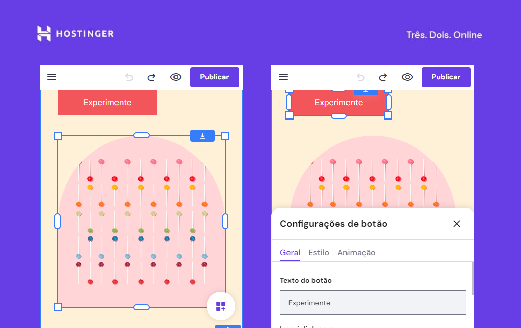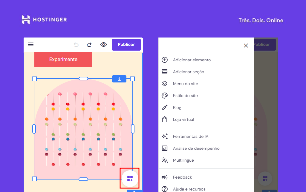 Repaginamos a interface do usuário (UI) e melhoramos os controles principais para deixá-los mais intuitivos e compatíveis com smartphones. Com essas atualizações, o Criador de Sites da Hostinger agora tem a cara de um app para smartphone.