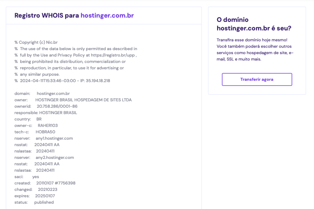 Nessas ferramentas, é possível solicitar ao registrador de domínios que forneça as informações de contato do dono do domínio.