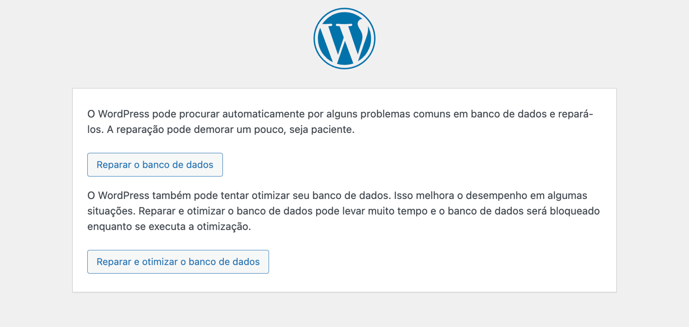 http://www.seusite.com.br/wp-admin/maint/repair.php. Lembre-se de substituir “seusite” pelo domínio do seu site. Por fim, você verá uma opção na tela para Reparar e otimizar o Banco de Dados.