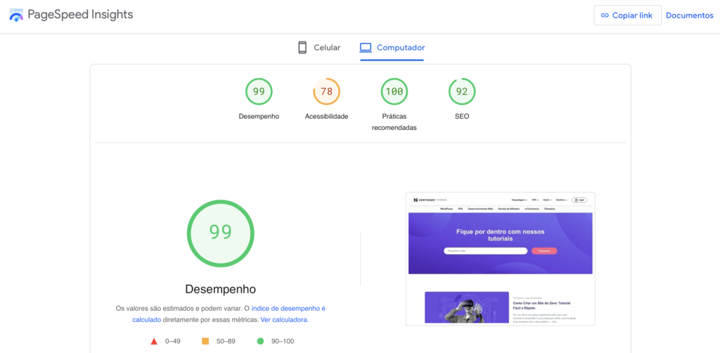 Além de pontuar os sites com base em seu desempenho, o PageSpeed Insights também oferece dicas pontuais sobre como melhorar a otimização de velocidade das suas páginas.