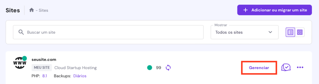 1. Faça login no hPanel e vá para Sites → Gerenciar.