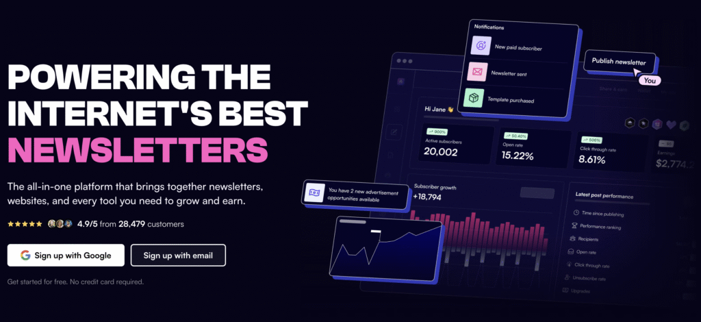 The platform also supports sponsored newsletter placements and monetization options, allowing users to generate additional revenue alongside affiliate commissions.