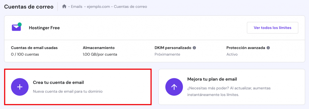 Estos son los pasos para crear una nueva dirección de correo electrónico con Hostinger:
