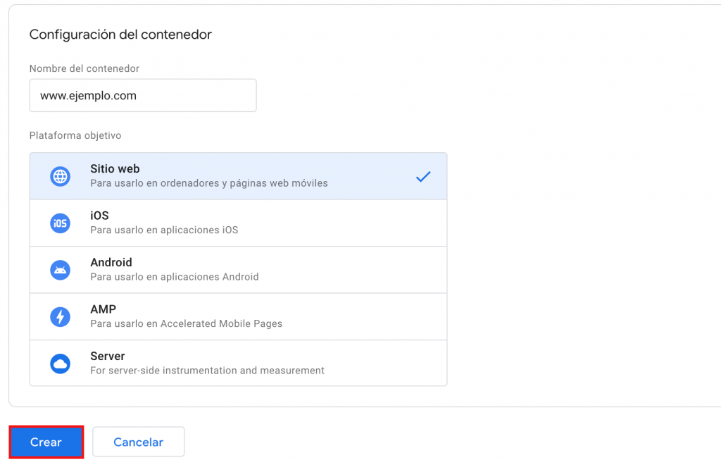 Debes empezar por seguir los pasos para crear una cuenta de Google Tag Manager explicados en la parte anterior.