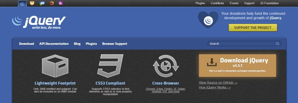 Además, jQuery es compatible con todos los navegadores, por lo que es compatible con los navegadores más populares. También funciona con selectores CSS3 y con la sintaxis del lenguaje de rutas XML (XPath).