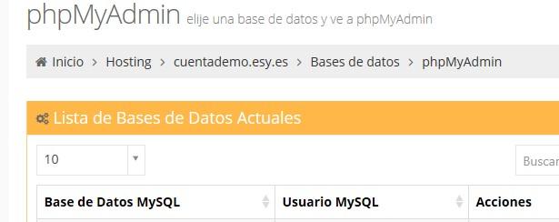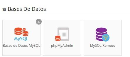 Por lo general phpMyAdmin se encuentra localizo en la sección Base de datos del panel de control: