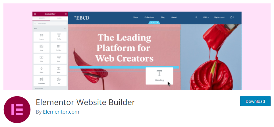 Sehen wir uns als Beispiel den Elementor Page Builder an. Mit ihm können Sie das Erscheinungsbild einer Website mithilfe eines intuitiven Drag-and-Drop-Editors anpassen.
