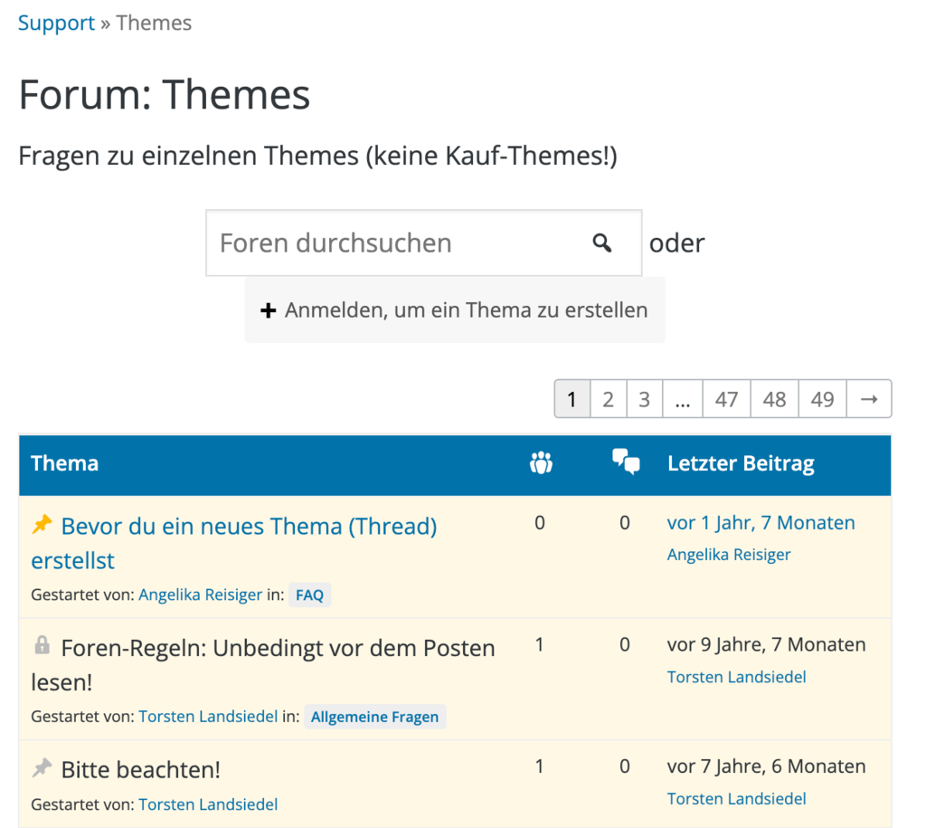 Die Dokumentation und die Foren sind in verschiedene Kategorien unterteilt, so dass Sie leicht das gewünschte Thema finden können. Einige der Dokumentationskategorien behandeln die Installation, die grundlegende Verwendung und die Anpassung.