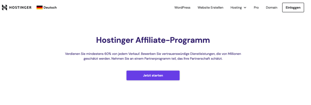 Die Wahl eines Partnerprogramms, das zu Ihrer Nische passt, ist der erste Schritt. Zum Beispiel, wenn Ihre kleine Unternehmenswebsite sich um die Webhosting-Industrie dreht, bewerben Sie sich für Programme wie Hostinger Affiliate und fügen Sie einzigartige Links in Ihren Inhalt ein.