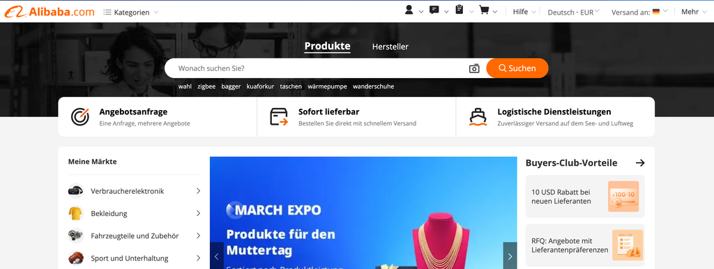 Auf der E-Commerce-Website kann man verschiedene Arten von Produkten kaufen und verkaufen, darunter Elektronik, Schönheitsprodukte, Industrieausrüstungen, Kleidung und Sportgeräte.