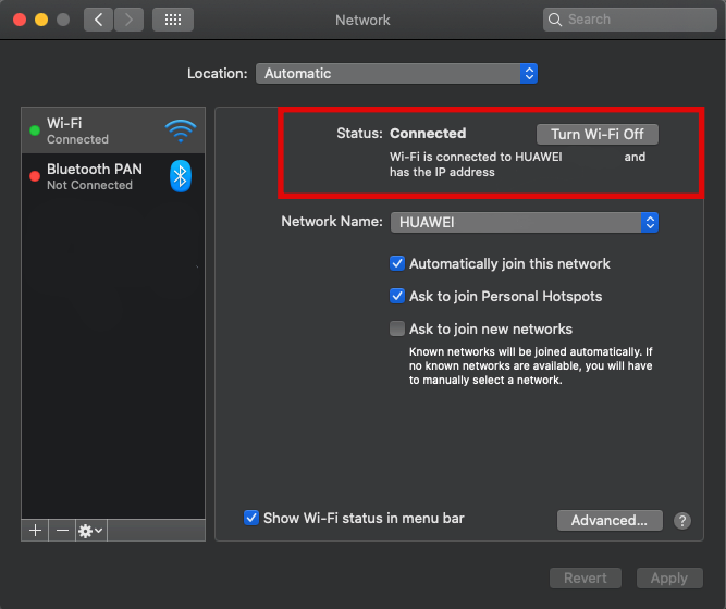 2. Wählen Sie das Netzwerk aus, z. B. Wi-Fi, und Sie finden die IP-Adresse des Computers direkt über dem Netzwerknamen.
