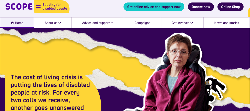 Scope ist ein hervorragendes Beispiel für eine Website, die der Barrierefreiheit Priorität einräumt, vom Farbkontrast bis zur Verwendung von Titeln und Überschriften. Diese Website führt außerdem alle drei Monate einen Barrierefreiheitstest durch.