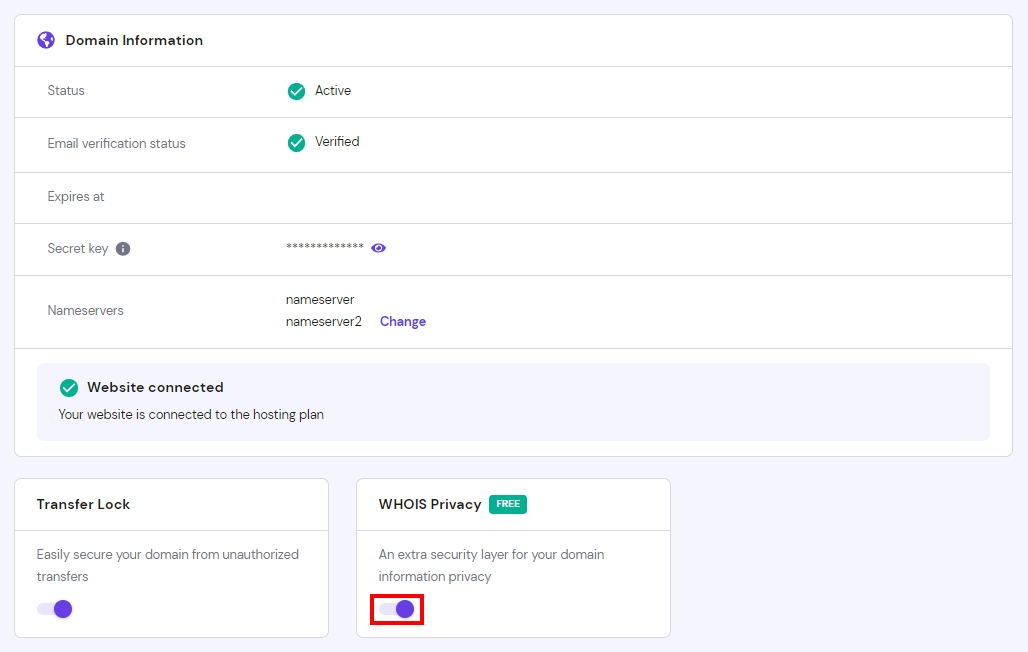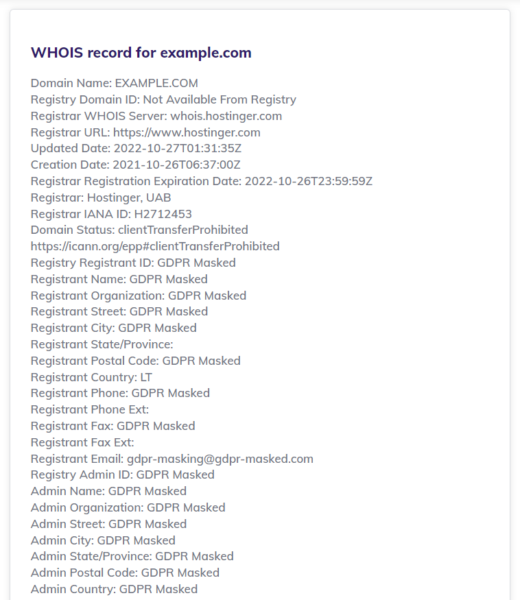 Der Schutz der Domain-Privatsphäre ist eine gute Möglichkeit, um Cyberangriffe auf Ihre Website zu verhindern. Bei der Registrierung einer Domain speichert das WHOIS Ihre persönlichen Daten, einschließlich der Telefonnummer, der Privatadresse, des Domainnamens, der IP-Adresse und des Ablaufdatums.
