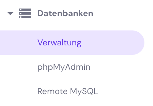 Wenn Sie sicher sind, dass Sie die richtigen Datenbankinformationen eingegeben haben, versuchen Sie, Ihr MySQL-Passwort zurückzusetzen. Gehen Sie zu Datenbanken → Verwaltung, klicken Sie auf das Symbol mit den drei Punkten und wählen Sie Passwort ändern.
