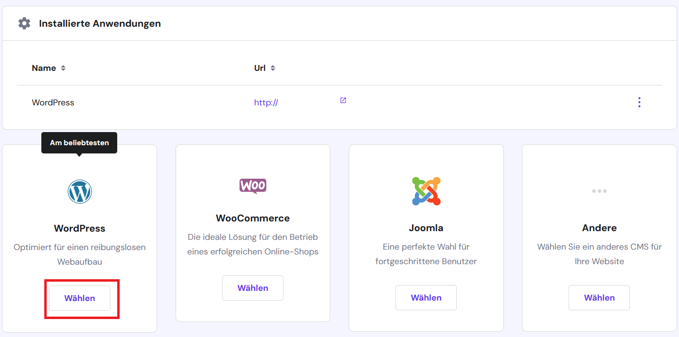 Deshalb empfehlen wir Ihnen, sich für ein WordPress-Hosting zu entscheiden. Unsere WordPress-Tarife zum Beispiel sind speziell für dieses Content-Management-System optimiert und erlauben Ihnen, es mit wenigen Klicks zu installieren.